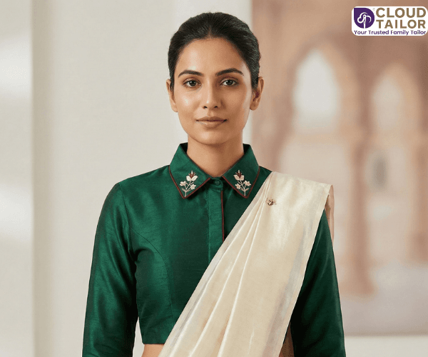 Discover stylish collared blouse designs for a modern ethnic look. Get custom-tailoring for the perfect fit with CloudTailor